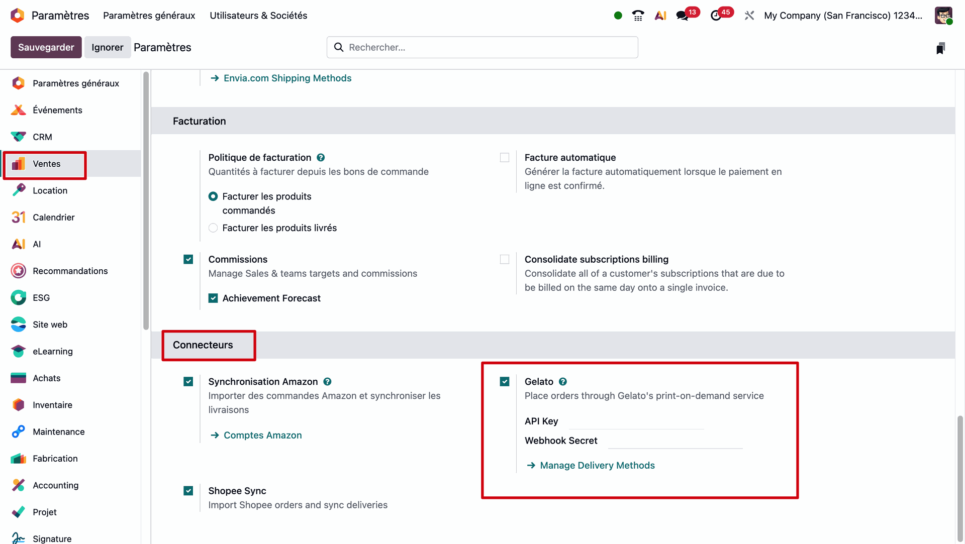5. Une autre intégration bienvenue et proposée par Odoo 19 est celle de Gelato. Et Gelato, késako ? Il s'agit d'une plateforme internationale d'impression à la demande qui permet aux entreprises de vendre des produits personnalisés comme des t-shirts, des mugs, des posters... sans qu'elles aient à gérer elles-mêmes la production ou la logistique de ces produits.
