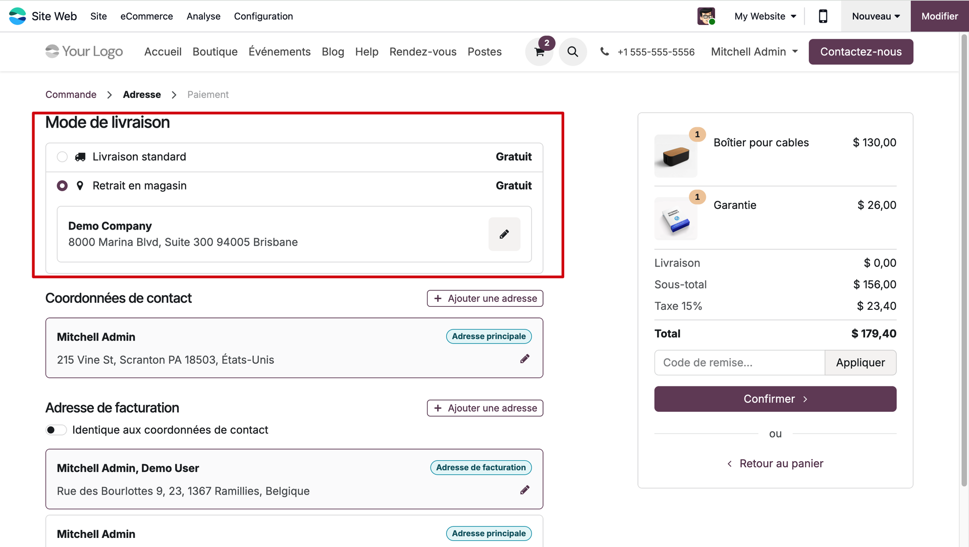 La page suivante sur laquelle nous atterrissons va notamment nous proposer différents modes de livraisons. Parmi eux, nous pouvons bel et bien cocher l'option "Retrait en magasin"!