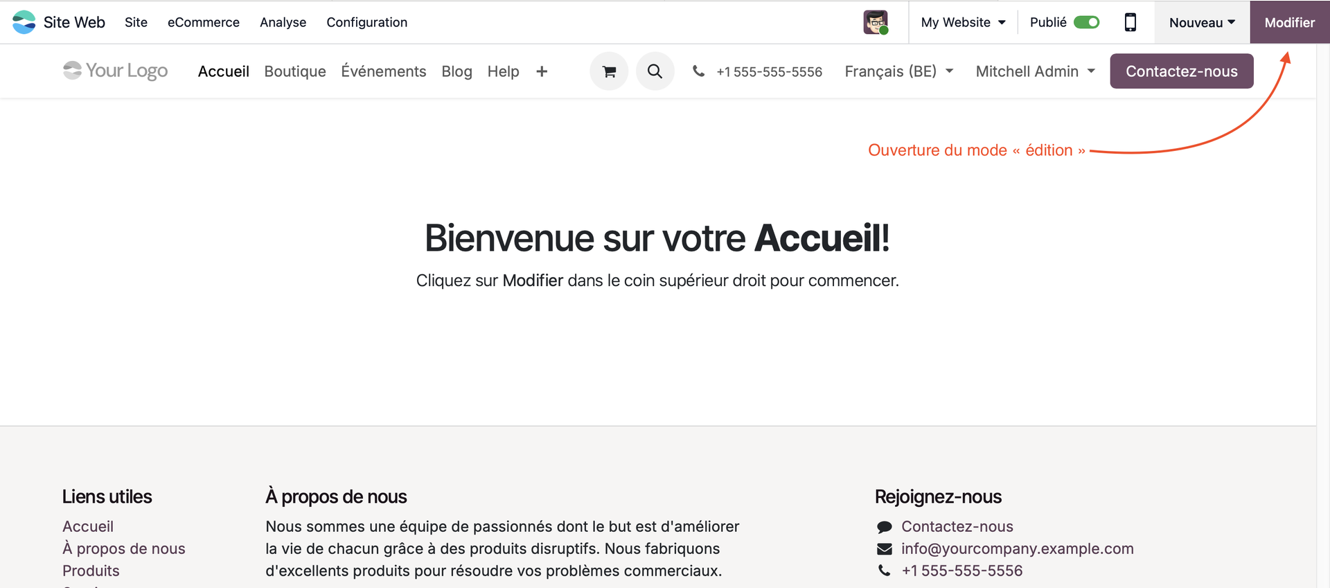 Maintenant que nous avons revu brièvement le fonctionnement de base du module Website, c'est parti pour la découverte des nouveautés Odoo 19 !