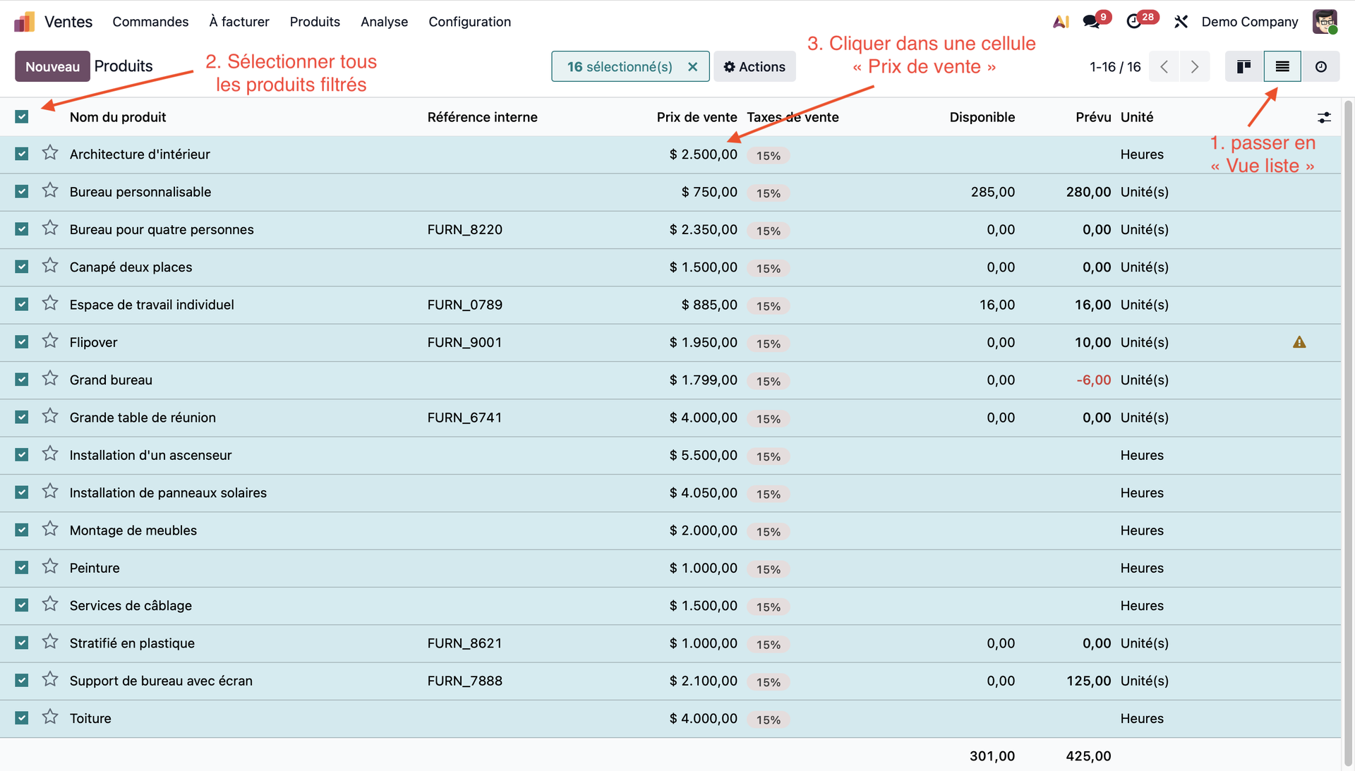 Il ne nous reste plus qu'à contempler le résultat : le prix de vente de notre sélection d'articles à bel et bien été mis à jour dans sa totalité !
