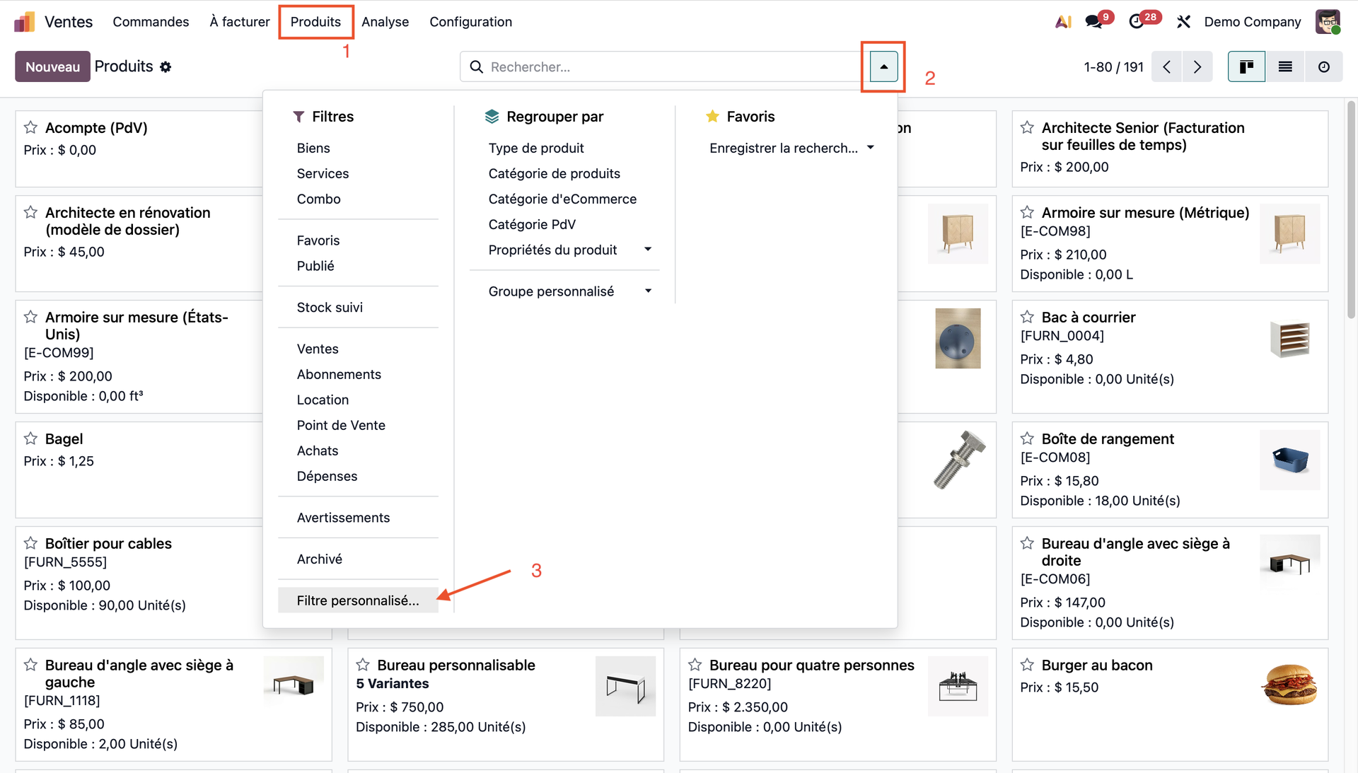 2) Filtrer les produits